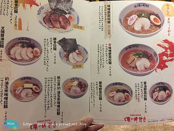 接著是菜單的部分,拉麵的價格約在180~390元不等