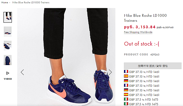 網址:http://www.asos.com/nike/nike-blue-roshe-ld1000-trainers/prd/6529855?iid=6529855