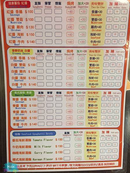 接著就是菜單的部分,選擇相當的多,雙面滿滿,可自由搭配