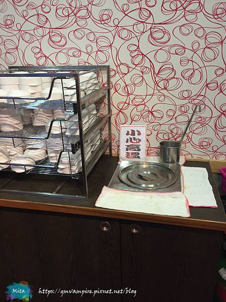 濃湯盛裝區也有貼心的標誌牌,提醒客人注意高溫