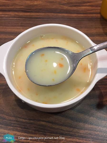 湯品是:玉米湯,但是沒吃到玉米,內有洋蔥碎丁、胡蘿蔔碎丁