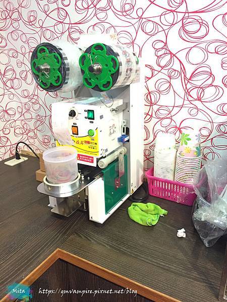 飲料機台旁有台封口機,上面有張紙條寫請勿自行使用