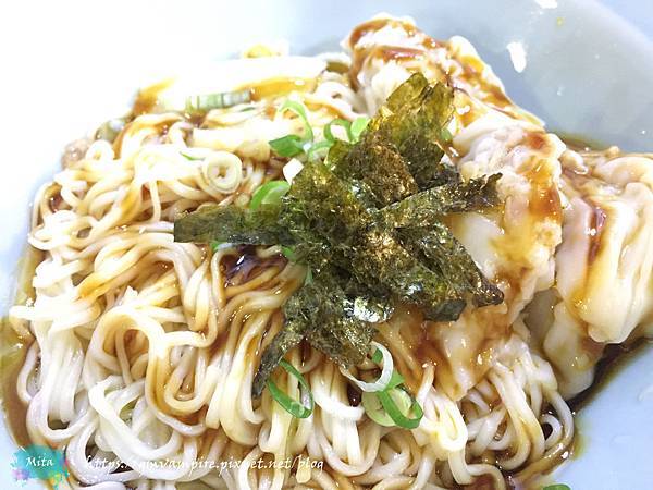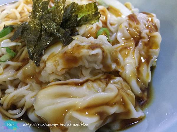 炒手乾麵內有三個大炒手,內包著鮮肉,再用海苔絲裝妝點,看起來就超好吃