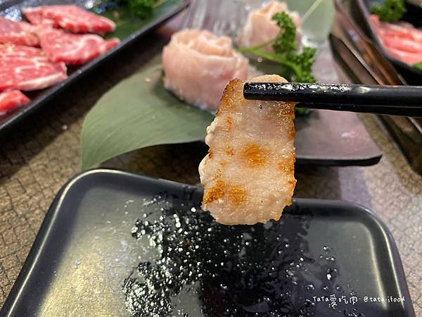 肩小排的油花分佈美美的肉質鮮嫩,加一點點玫瑰鹽一起吃就很美味了