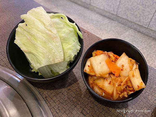美生菜跟泡菜可以包著肉一起吃,解解膩