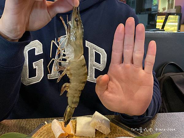 海鮮拼盤的大鮮蝦,大小跟男生的手掌般大